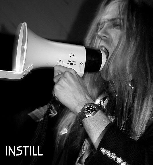 Instilling: to infuse slowly or gradually into the mind or feelings; insinuate